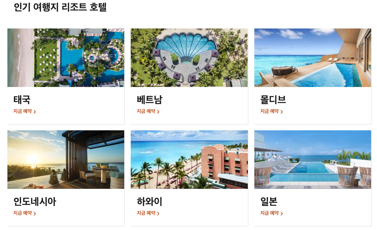 메리어트 호텔 사전예약으로 인기 여행지 리조트 호텔
