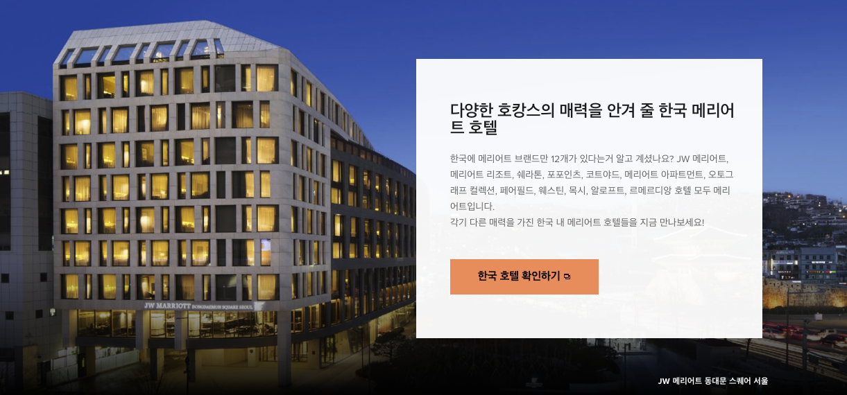 - JW 메리어트 동대문 스퀘어 서울 - JW 메리어트 호텔 서울 - 웨스틴 조선 서울 - 코트야드 서울 타임스퀘어