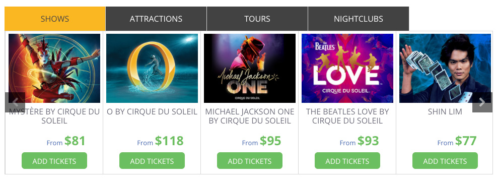 라스베가스 쇼공연, 호텔, 렌터카, 버스투어예약