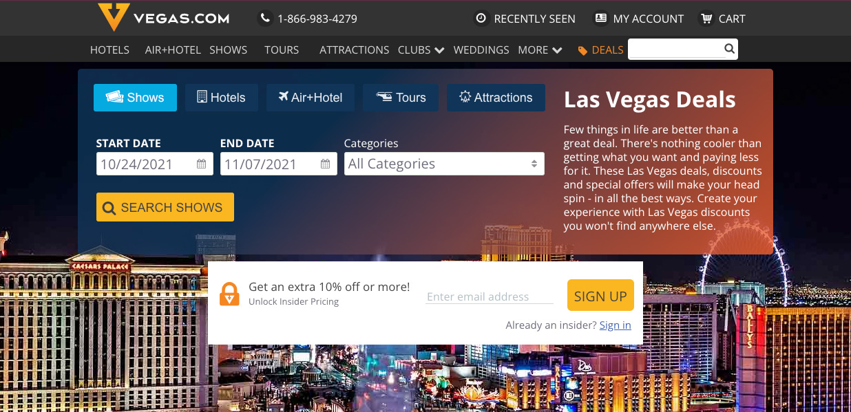 1. 베가스닷컴 10월 할인프로모션코드 (라스베가스 호텔, 공연, 투어 프로모션)