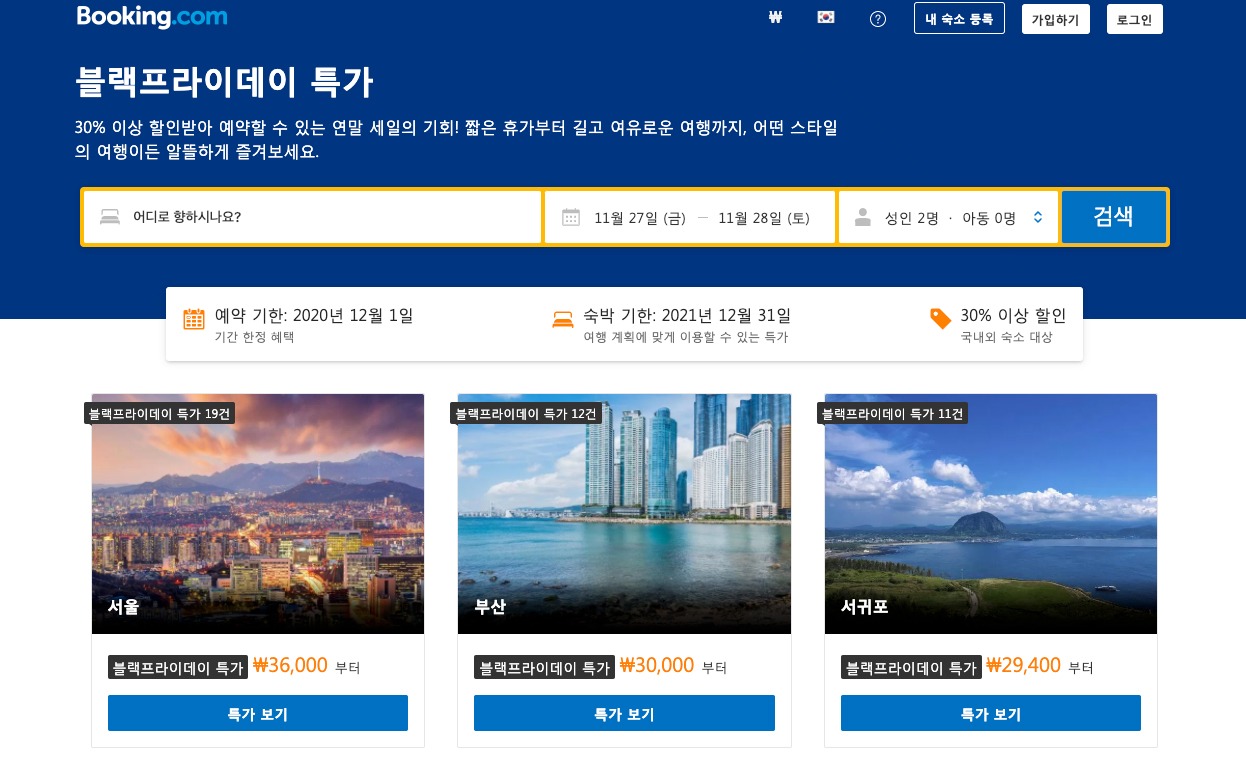 2020년 블랙프라이데이 부킹닷컴 세일 시작되었다.
