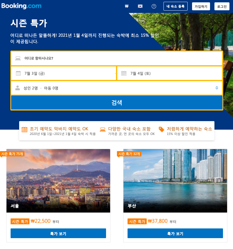 15% 할인특가 휴가시즌 부킹닷컴 특가호텔 리조트 확인하기