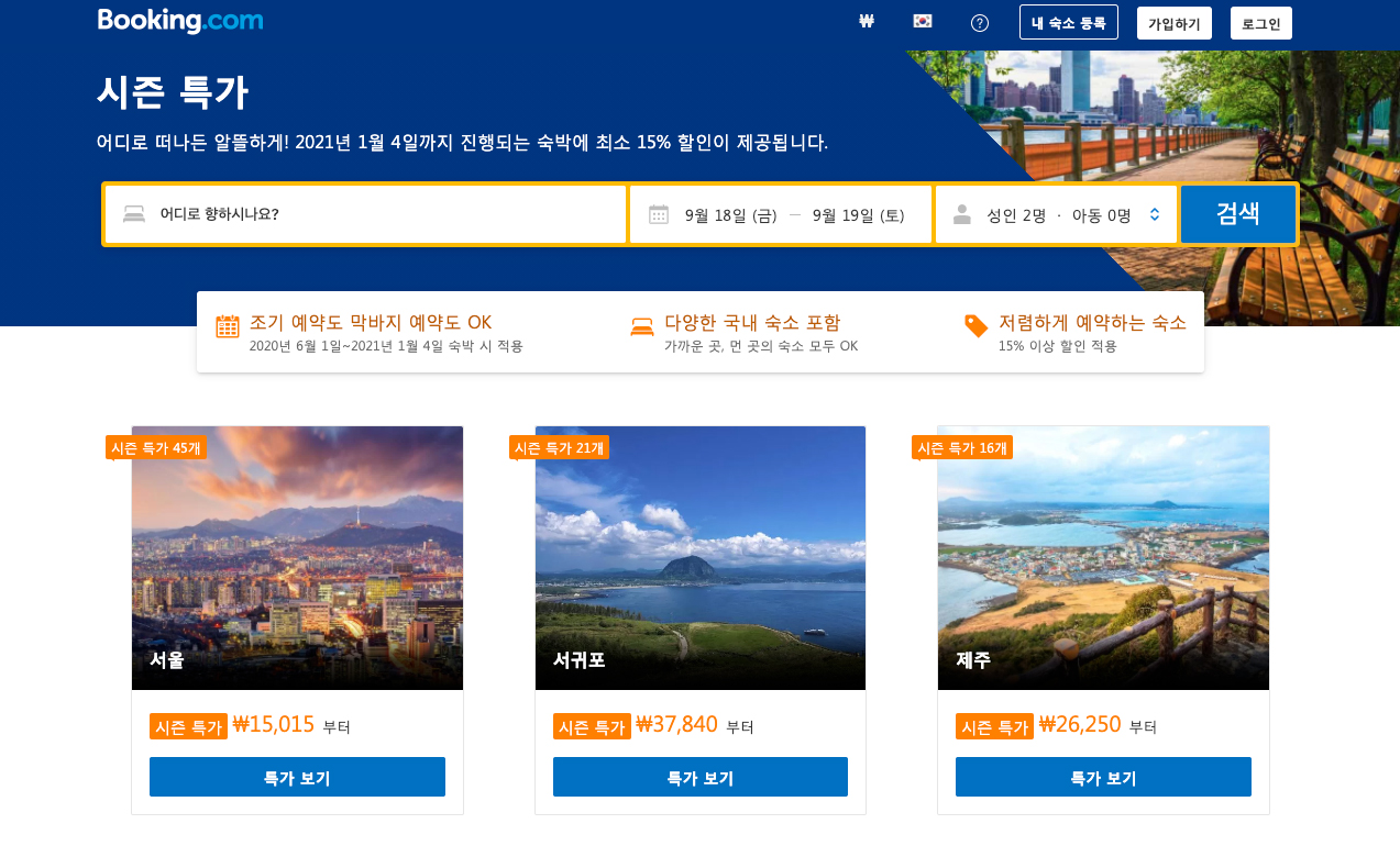 15% 할인 가을 추석시즌 부킹닷컴 특가호텔 리조트 확인하기