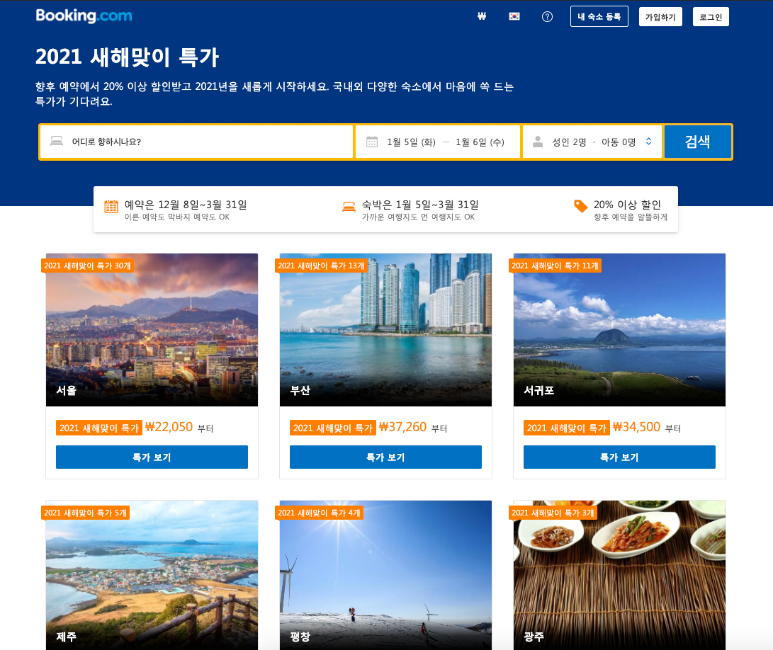 20% 할인 새해맞이 일출 해돋이시즌 부킹닷컴 특가호텔 리조트 확인하기