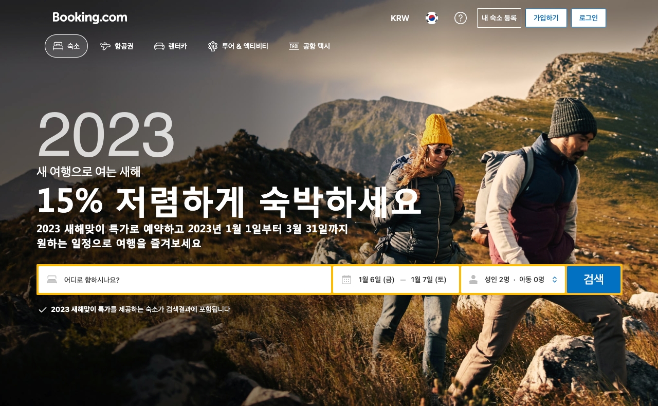 부킹닷컴 1월 프로모션코드 2023년 설날연휴여행 15% 할인쿠폰