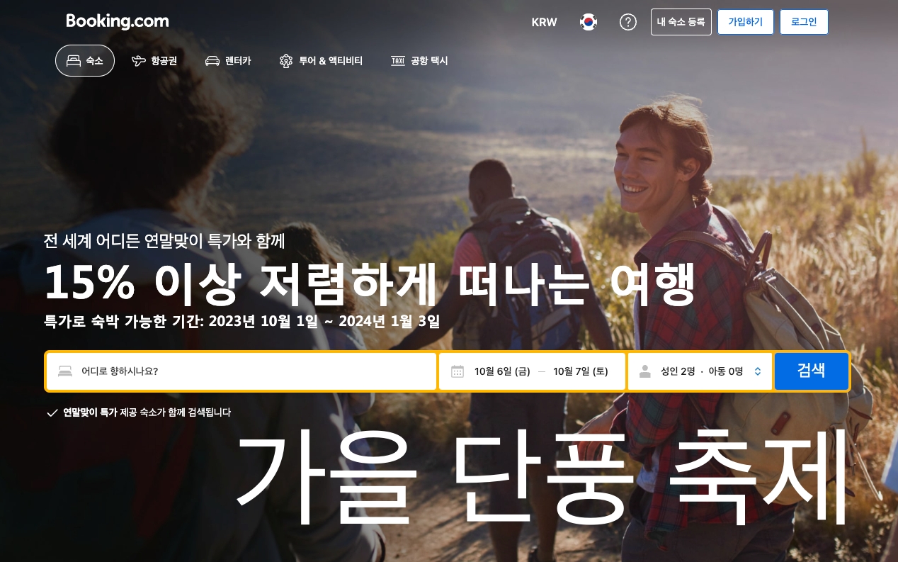 15% 할인 단풍축제시즌 호캉스 공략 국내 해외여행 10월 - 11월 부킹닷컴 특가 호텔 숙박시설 확인하기