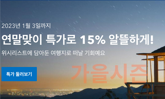 15% 할인 가을시즌 해외여행 10월 - 12월 부킹닷컴 특가 호텔 숙박시설 확인하기