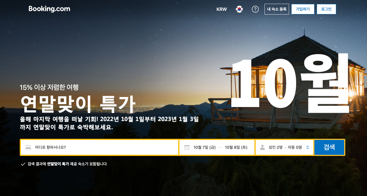 부킹닷컴 10월 프로모션코드 2022 크리스마스연휴 및 겨울방학 여행