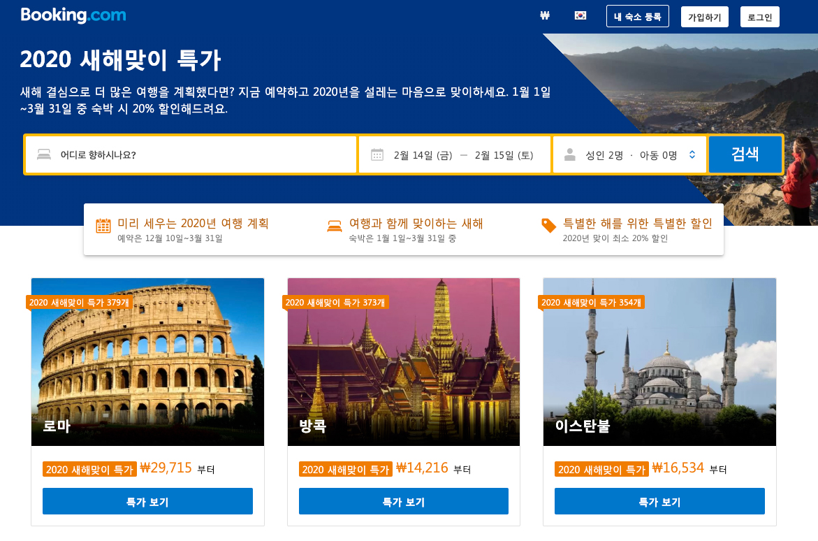 Booking.com Deals 2020 새해 봄시즌 특가호텔