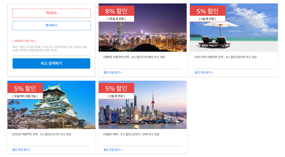 | 호텔예약사이트 호텔스닷컴, 부킹닷컴, 아고다, 익스피디아 10월 할인코드 2019년 가을시즌 여행 쿠폰모음 (0) | 2019.10.02 |