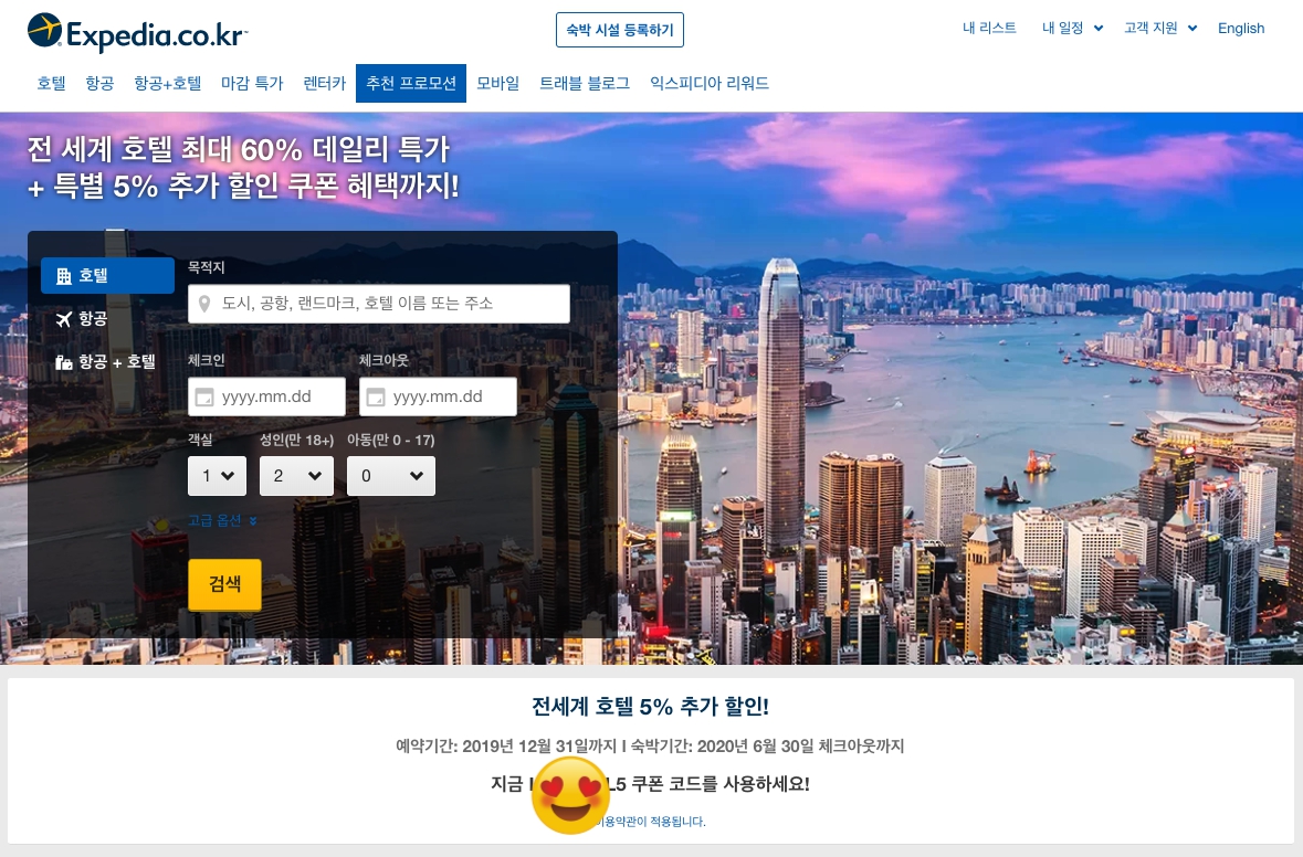 익스피디아 10월 할인코드 5% 할인쿠폰 (11월 가을호텔예약/허니문여행)