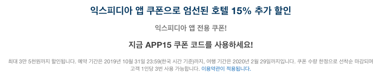익스피디아 10월 할인쿠폰 15% 할인코드 모바일 앱환경 APP15 (최대 3만 5천원까지)