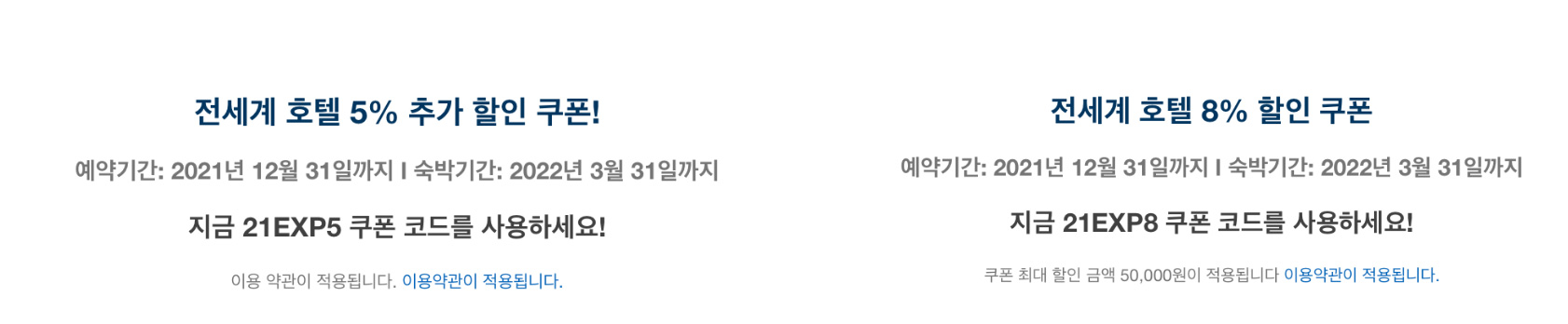 2. 익스피디아 한국어버전 8~10% 추가 할인 21EXP8 전세계 / 국내 호텔 원화결제시 최대 5만원 할인적용