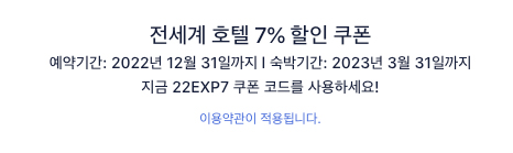 - 익스피디아 할인코드 9% 쿠폰 22EXP7 전세계 / 국내 호텔 원화결제시