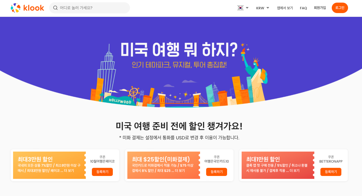 지금, 클룩에서 해외 현지투어 할인예약 찬스