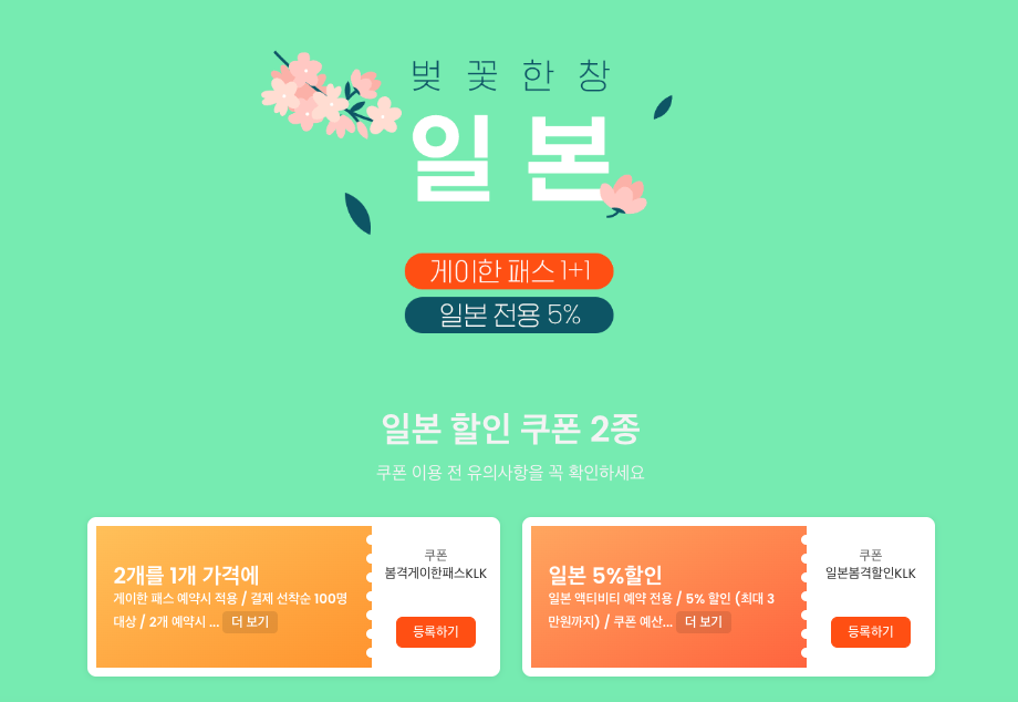 Klook 클룩 할인프로모션코드 벚꽃놀이 봄 테마파크 입장권부터 챙겨