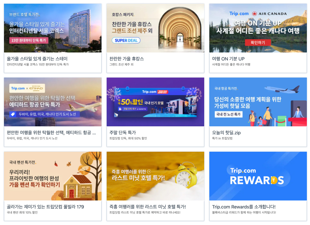 Trip.com 가을 단풍 펜션 특가예약 및 프라이빗한 독채 국내호텔예약 (국내호텔 기획전 / 강릉, 고성, 양양, 제주도 호텔 리조트까지)