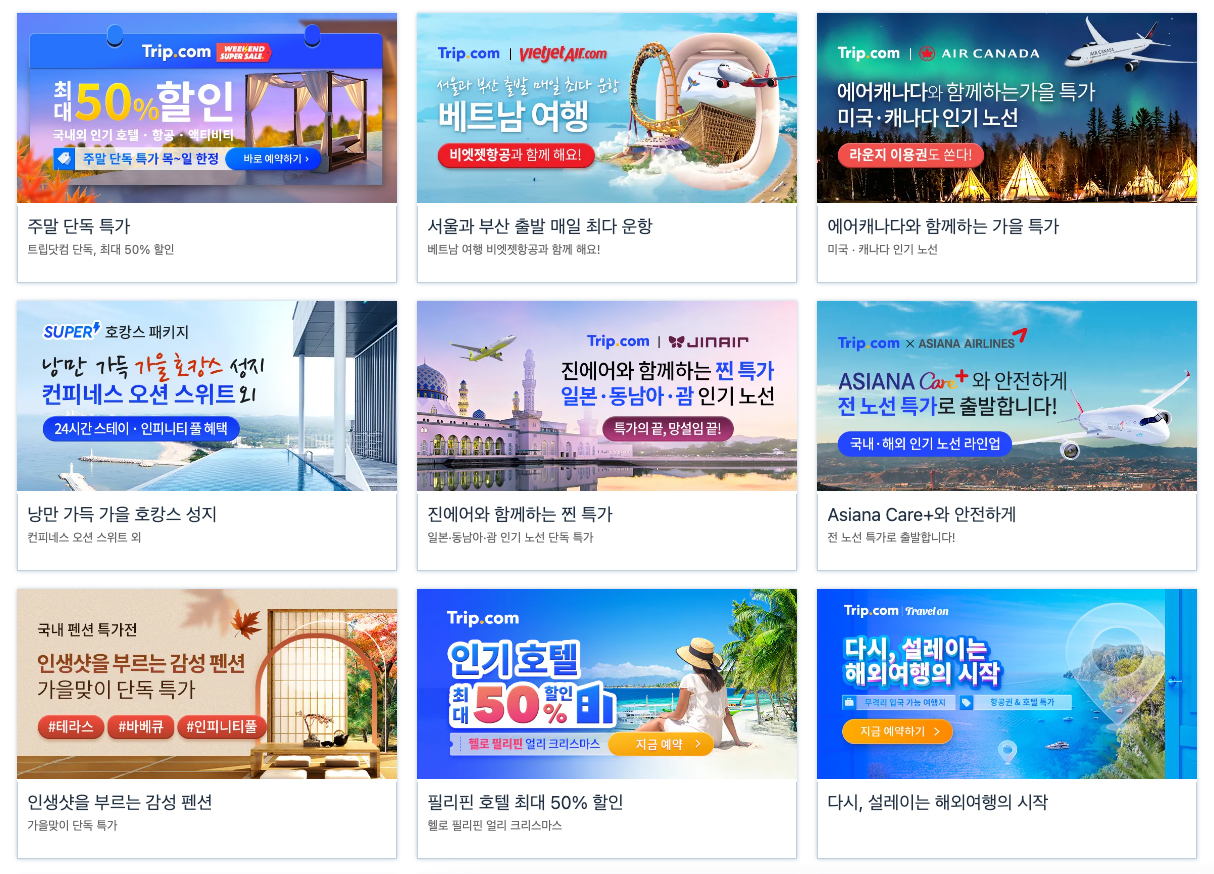 Trip.com 해외여행 및 국내여행 호캉스, 필리핀, 베트남 다낭, 유럽 특가예약 10월 11월 커플여행 할로윈 국내호텔예약 (국내호텔 기획전 / 다시 해외여행 및 국내 단풍축제 시즌 강릉, 고성, 양양, 제주도 호텔 리조트까지)