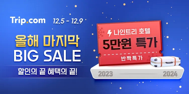 트립닷컴 12월 할인코드 올해 마지막 빅세일 프로모션 5만원 특가 Trip.com Promo 2023