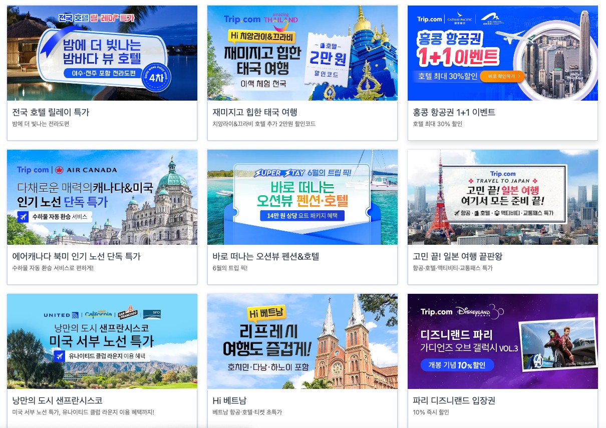 체류지역에서 가능한 범위 국내 및 해외 여행 준비 트립닷컴 6월 할인코드 7월 프로모션 특가 활용한