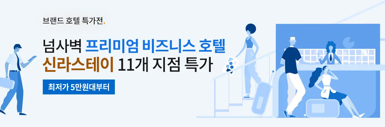 - 신라스테이 11개 지점 최저 5만원부터 (서울 구로, 서초, 역삼, 삼성, 서대문, 마포, 광화문 / 신라스테이 울산, 천안, 동탄, 서부산)