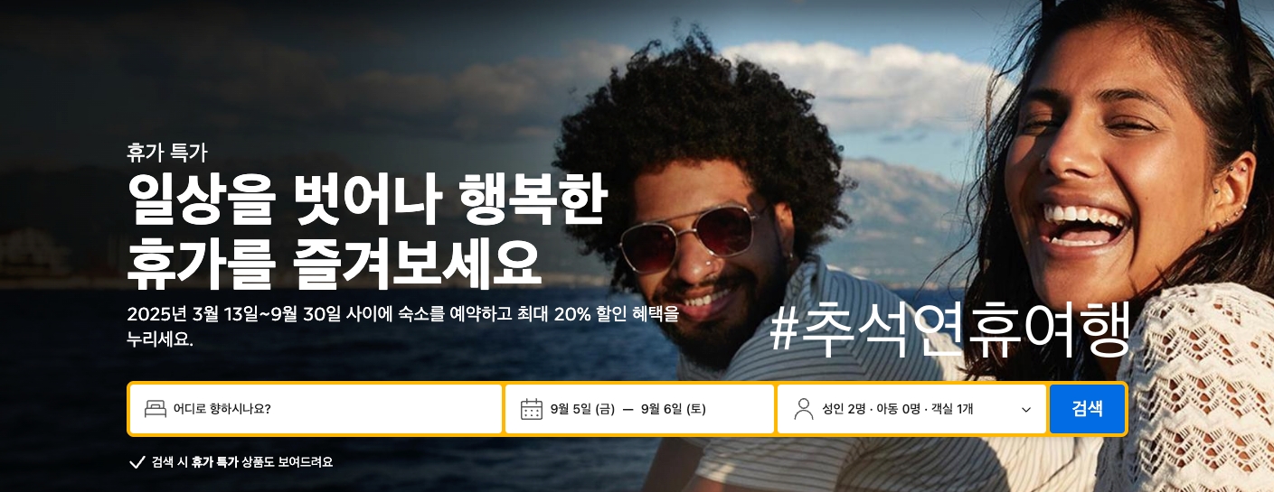 20% 할인특가 Booking.com 추석연휴 휴가 호캉스 특가호텔 리조트 가을 부산, 서울불꽃축제 확인하기