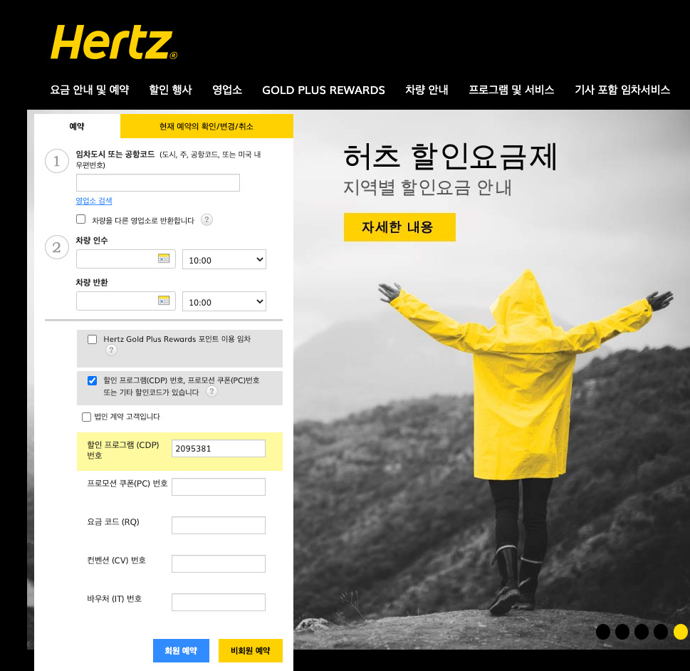 허츠 할인 프로그램번호 코드 10% OFF CDP