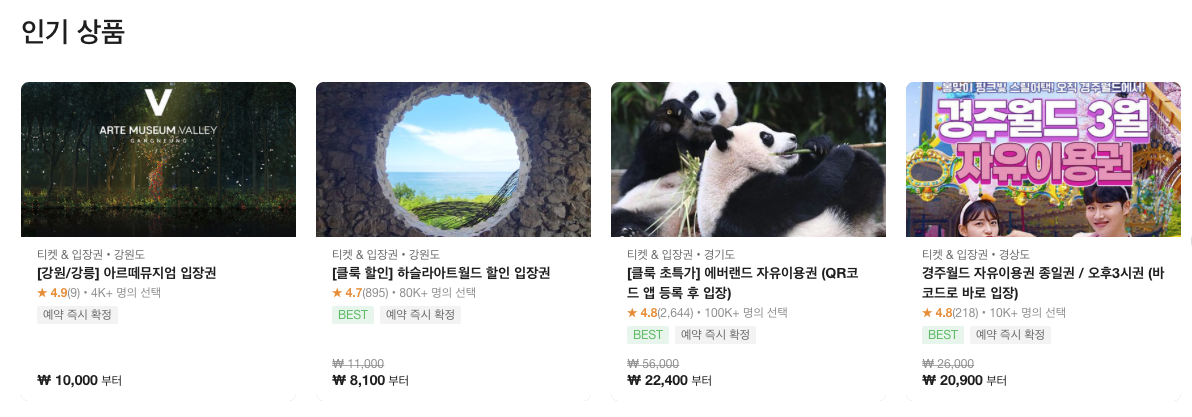 제주도 강릉 아르떼뮤지업 입장권, 경주월드 자유이용권, 롯데월드, 서울 스카이, 에버랜드까지 한번에 체크